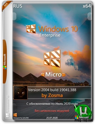 Микро сборка Windows 10 Enterprise x64 2004 build 19041.388 by Zosma торрент, изменения: