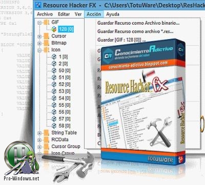 Resource Hacker - программа для просмотра, извлечения, изменения и добавления ресурсов для Win32-приложений, т.е. по своей функциональной направленности схожая с широко известной программой Restorator (внешностью, кстати, тоже), но бесплатна... Resource Hacker может применяться как для простого "выдергивания" иконок, музыки и прочего, находящегося в исполняемых файлах (*.exe, *.dll, *.cpl, *.ocx) и в Win32 файлах ресурсов (*.res), так и, например, для модификации интерфейса программы, в том числе и его перевода на другой язык.